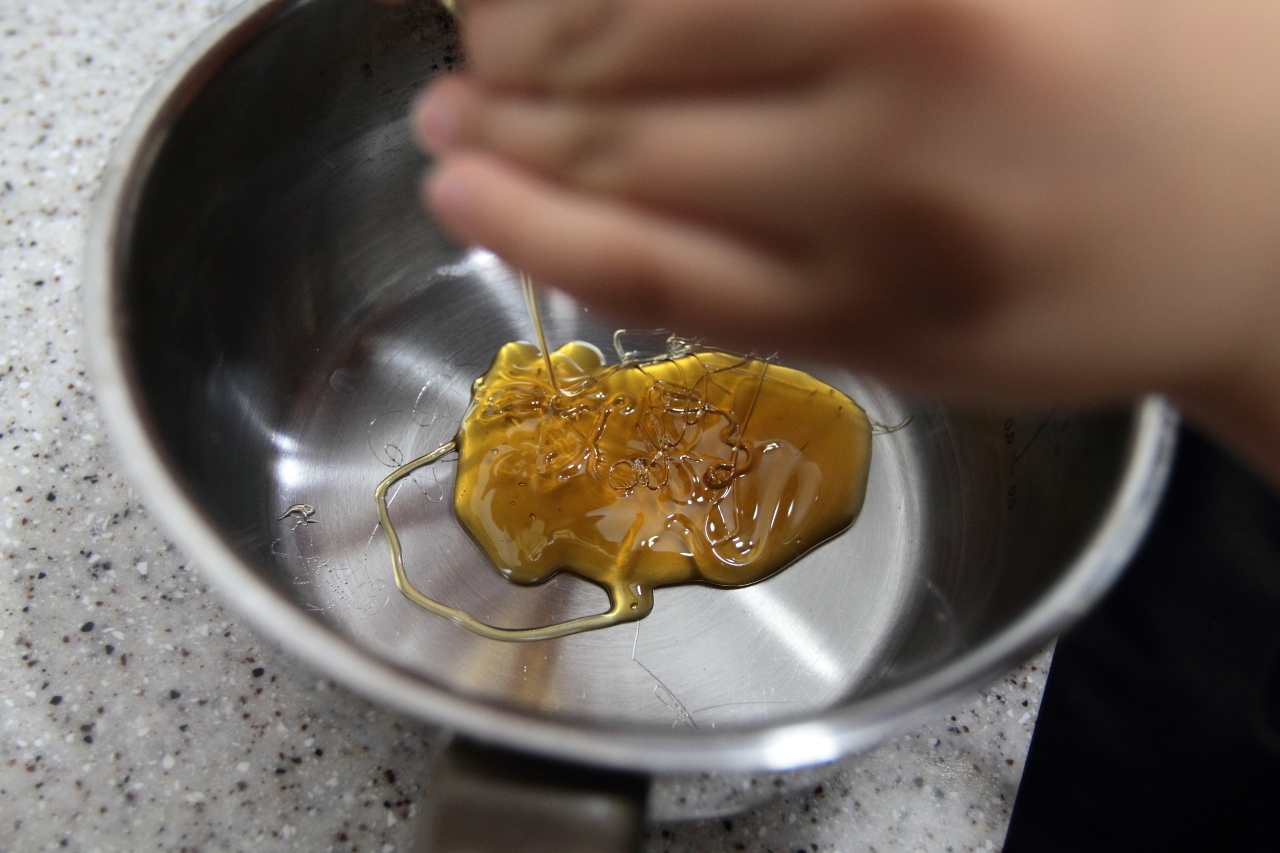 제일 먼저 해야 할 일, 냄비에 물엿을 넣는다.