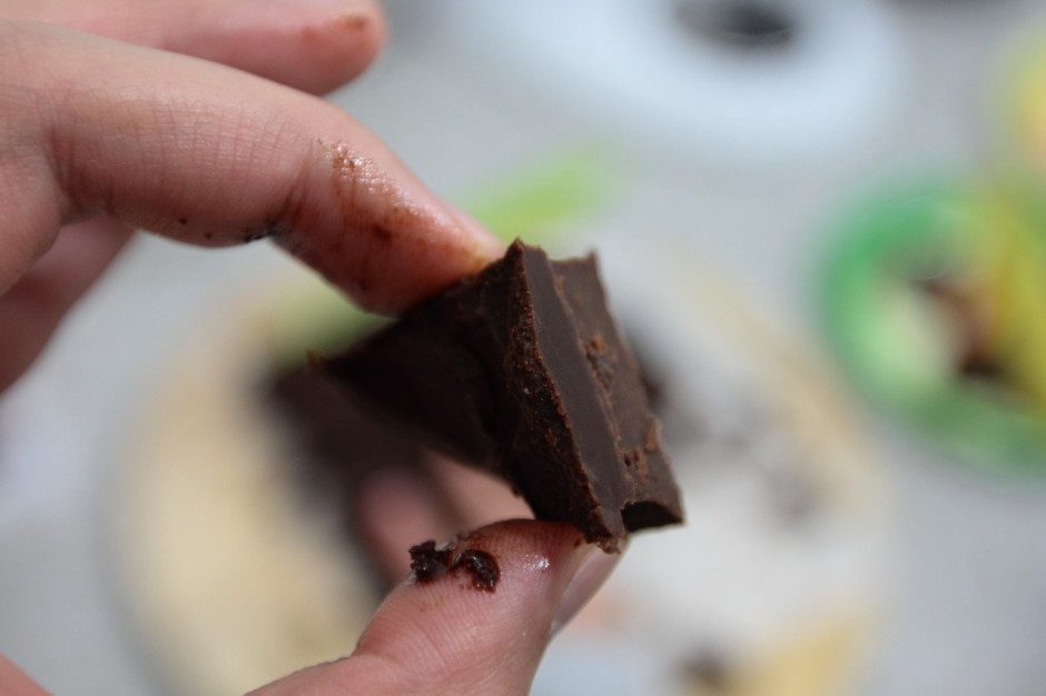 한 시간 이상 냉장고에 넣다가 꺼내니 초콜릿이 딱딱해 졌다.