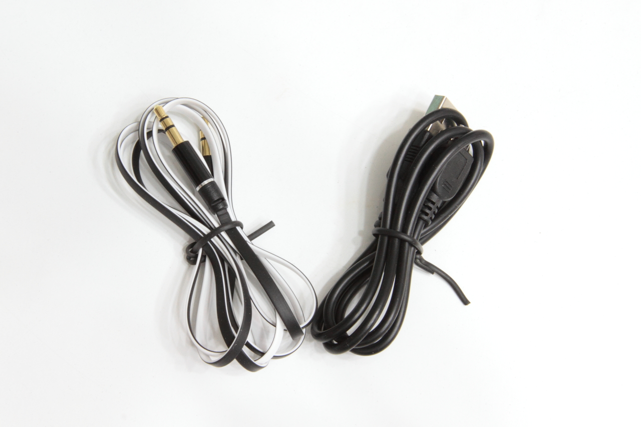 함께 동봉되어 있는 3.5파이 케이블과 USB충전 케이블.