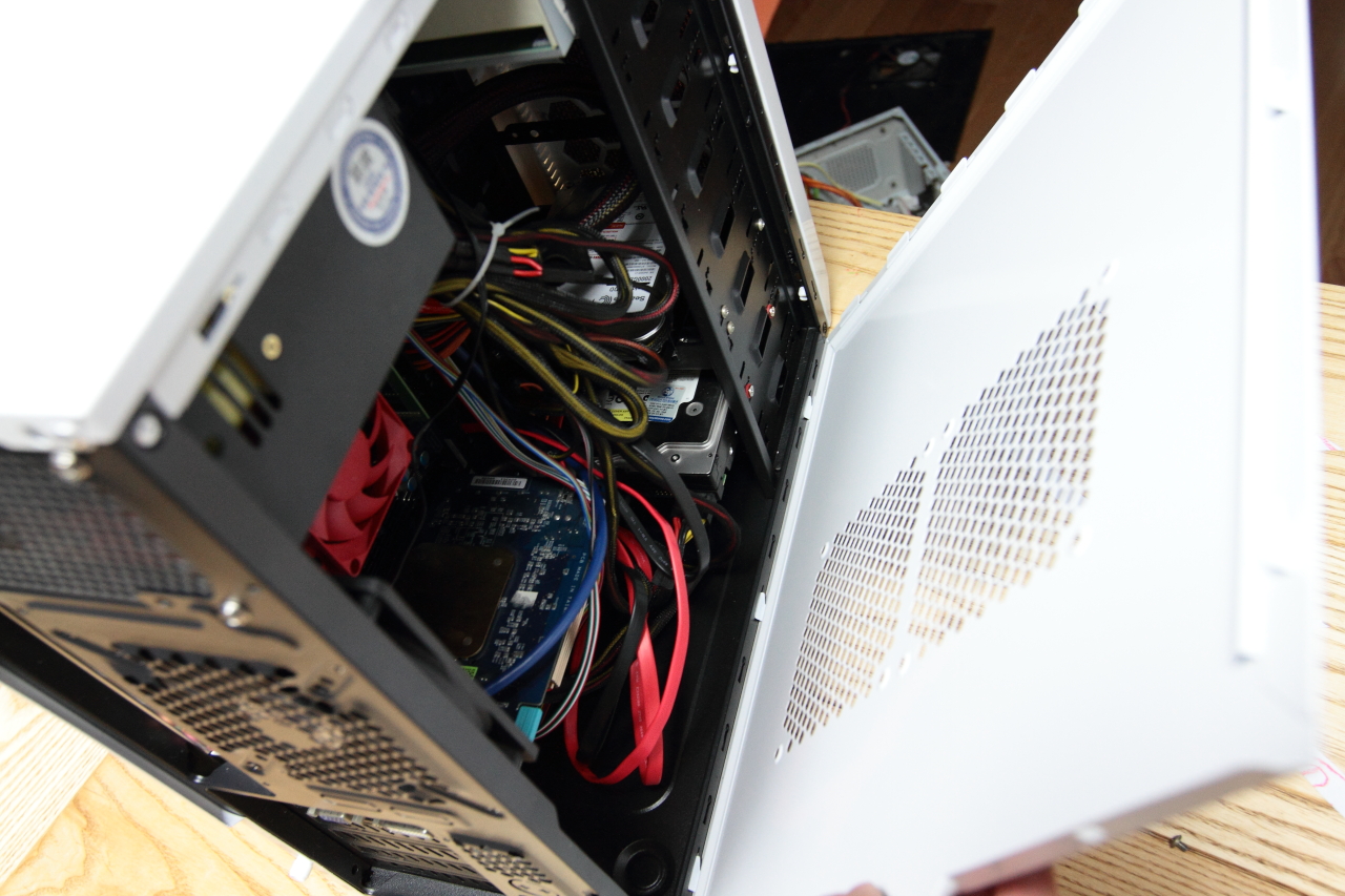 보통 케이스의 상단 부분에 파워를 고정시키는 홈이 있는데, 케이스를 옆으로 눕혀 놓고 작업하면 조금 더 편하게 작업이 가능하다.