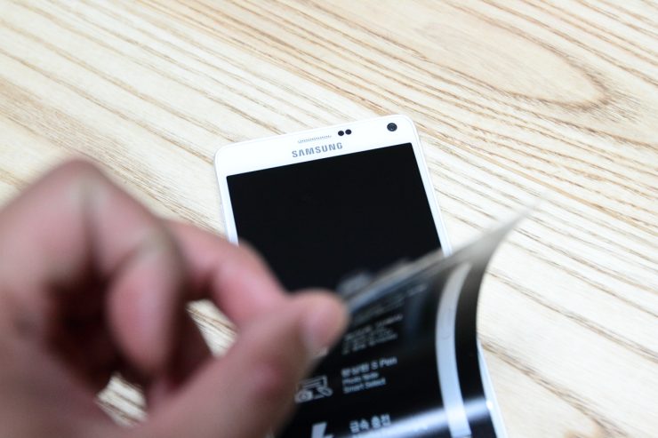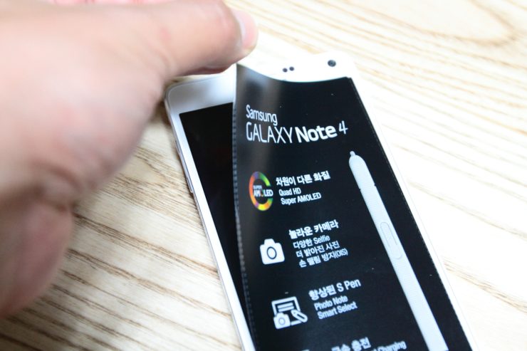 다행히 갤럭시 노트4를 구입하면서 사은품으로 액정보호필름을 2개나 받아서 일단 붙이고 본다.