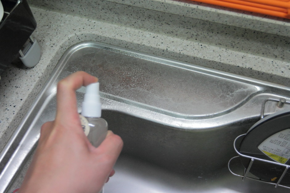 비록 이 제품이 탈취제이긴 하지만.. 물때제거에도 효과적이라는 이야기를 듣고 사용해 보는 것인만큼 싱크대 위의 물때 제거에 중점적으로 사용해 봤다.