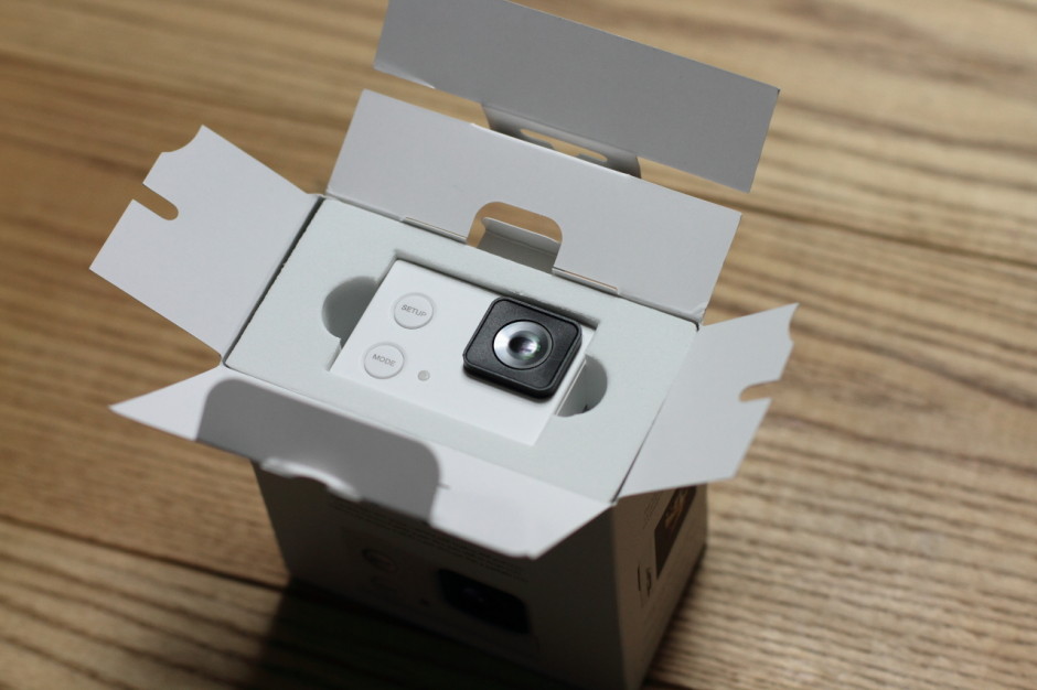 색상 자체가 밝고 예쁜 화이트라서 여성분들이 좋아할 것 같고, 전체적인 사이즈는 고프로와 비교해서 크게 차이가 느껴지지 않을 정도로 작은 사이즈다.