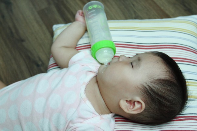 저녁 8시가 다 되어서 분유를 타 주었더니 꿀꺽꿀꺽 잘도 먹는다.