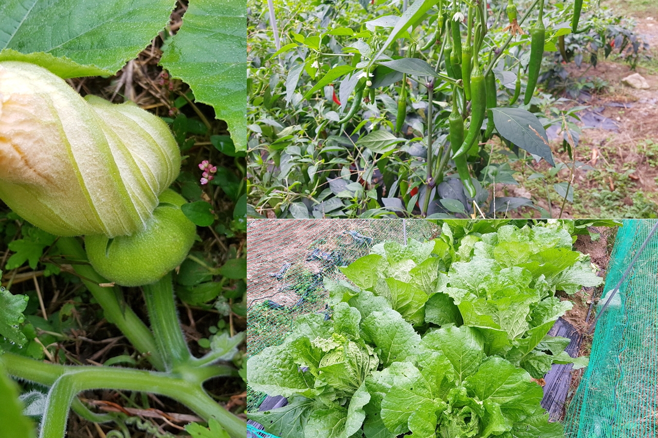 아마도 캠지기님께서 가꾸시는 텃밭같은데 텃밭에는 고추, 호박, 배추가 무럭무럭 자라나고 있었다.