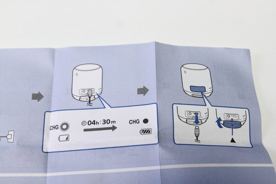 스마트폰용 일반 마이크로 5핀 케이블을 이용해서 충전하면 최대 16시간까지 스피커를 사용할 수 있다.