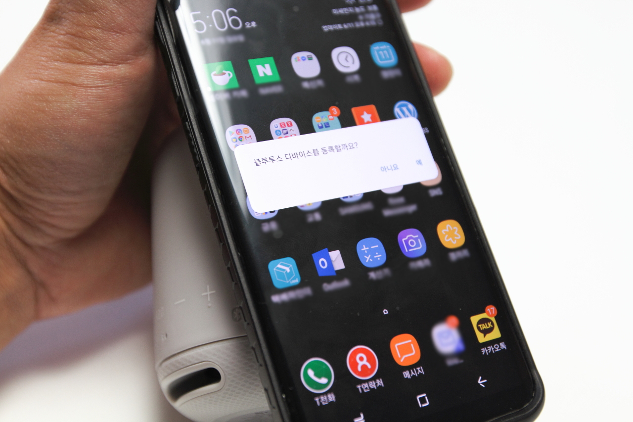 SRS-XB10에 있는 ‘N’마크에 스마트폰을 가져다 대기만 하면 “블루투스 디바이스를 등록할까요?” 라는 질문이 뜬다.