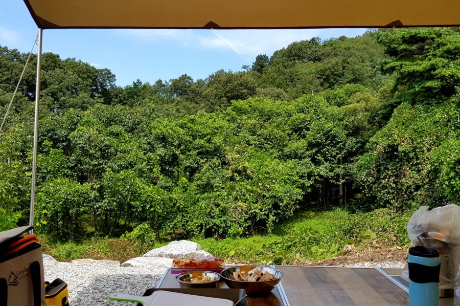 하지만 원두막 있던 자리에 타프를 칠 수 있었어 덕분에 사이트를 넉넉하게 사용할 수 있어서 좋았다.
