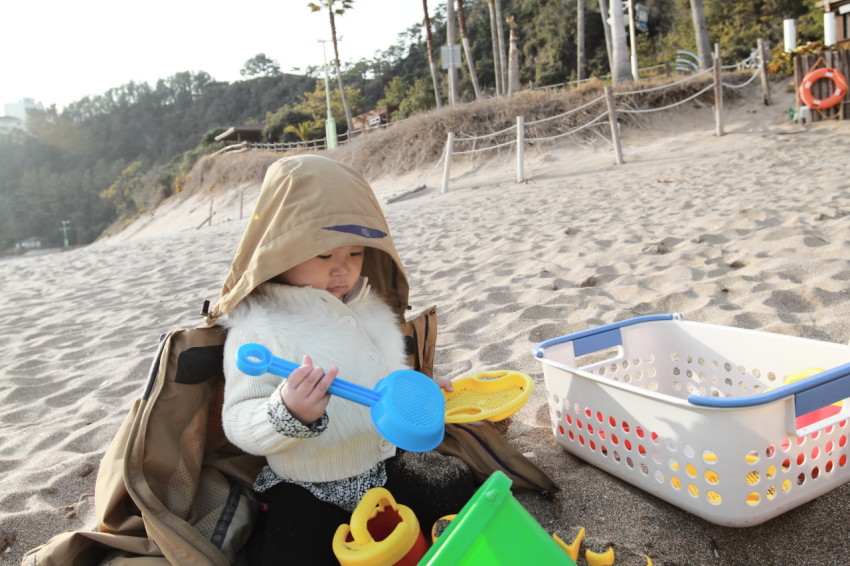 내가 족욕을 하고 있는 동안 아이들은 모래놀이를 하고 있었다.