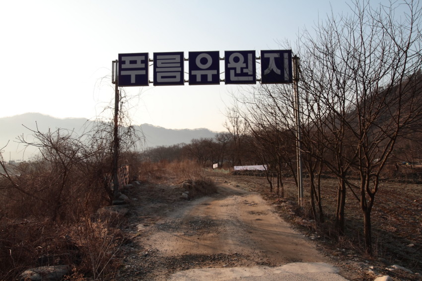 입구 직전까지는 시멘트 포장도로가 이어지지만, 푸름유원지 입구부터는 비포장도로가 시작된다.