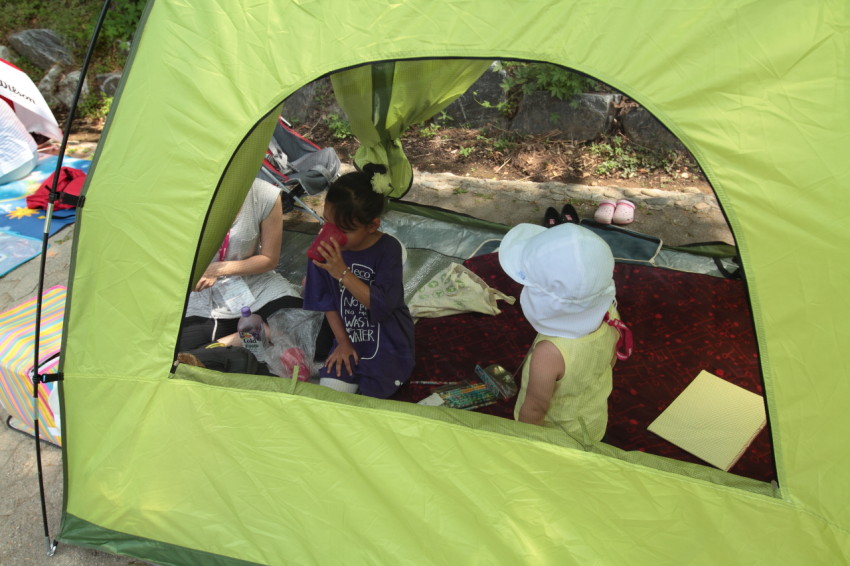다른 사람들이 다 그늘막 설치하고 열심히 그림 그리고 있길래 우리도 설치한건데,