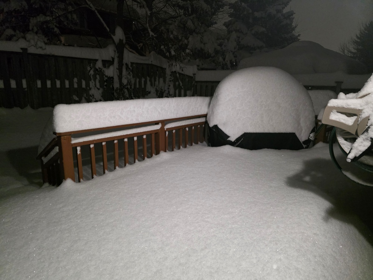 인터넷에서 검색해 보니 어제 옥빌 지역에 내린 눈은 무려 47cm라고 한다.